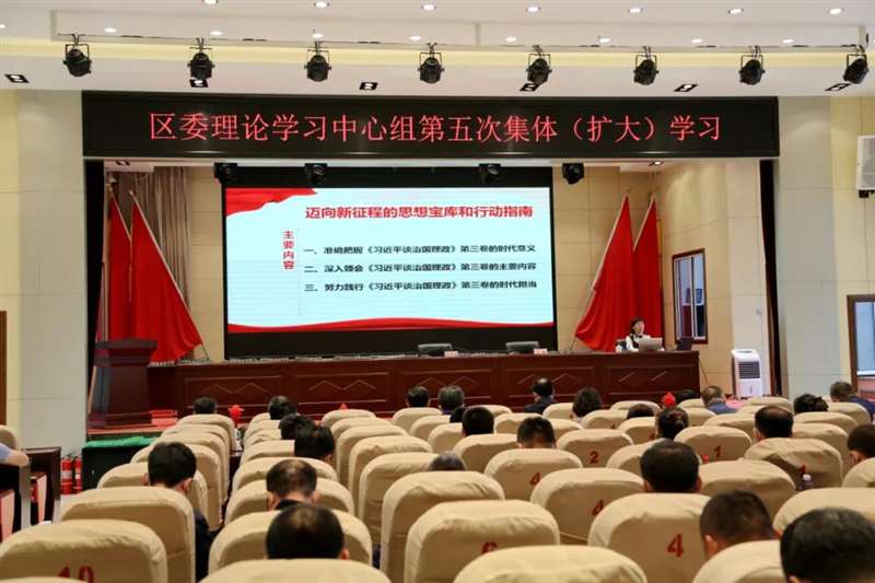 区委理论学习中心组坚持把深入学习贯彻党的十九届四中全会精神和习近平新时代中国特色社会主义思想作为区委理论学习中心组学习的核心内容,深入学习习近平总书记重要讲话和重要指示精神,及时学习中央和省委重大决策部署及重要会议精神,紧扣全面建成小康社会目标任务,深入开展学习和弘扬“四大精神”学习教育活动,不断活化理论学习载体,采取多种形式努力营造人人学习、时时学习、处处学习的良好氛围,采取集体研讨、理论自学,专题辅导、开展调研等多种形式,促进学懂弄通、指导实践、学做结合,提升领导干部的理论水平和实践能力,为建设现代化强区提供精神动力和智力支持。