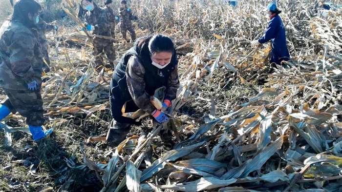 10月18日,在战区领导的带领下,望江镇帮扶干部齐出动。田野里,帮扶干部分工明确,前方干部拿起镰刀,挥洒汗水,一排排秸秆纷纷倒地,后方干部从中挑选,聚精会神,一穗穗玉米渐渐显露。帮扶干部们忙上忙下,干劲十足,仅一上午就收割完了6亩玉米地,预计一天即可完成15亩的收割任务。
