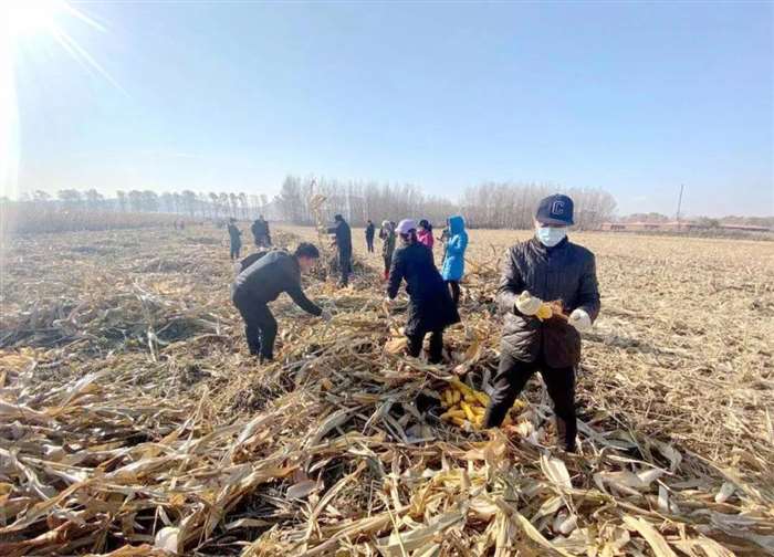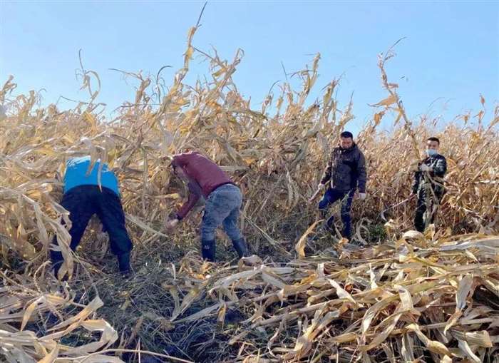 区文旅局20名党员干部深入到贫困户的耕地里,帮助他们抢收田间玉米,由于连续降雨,田间地里的垄沟里都是水,大型农机具无法进地里收割,全体党员干部拿着镰刀在泥泞难行的地里艰难的手动收割玉米秆、扒玉米、装车,大家相互配合,干劲十足,经过两天的连续抢收,收割玉米秸秆10余亩,收获玉米1万余斤。