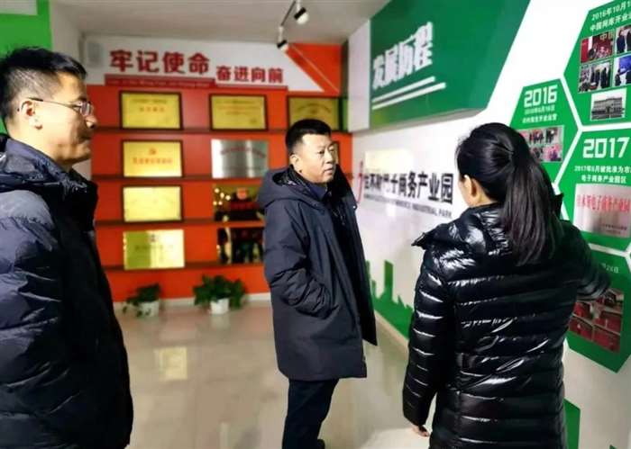 在电商园区,宋鹏程详细了解了园区发展历程、农产品销售、电商物流运行等情况,走访了新锐传媒等电商企业。