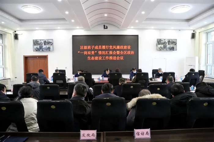 12月28日,区委书记冯甲伟主持召开区级班子成员履行党风廉政建设“一岗双责”情况汇报会暨全区政治生态建设工作推进会议。会上传达了《中共黑龙江省委关于推进政治生态根本好转的实施意见》和《黑龙江省政治生态建设成效考核办法》两个文件精神,听取了区级班子成员结合分管工作履行党风廉政建设“一岗双责”情况汇报。