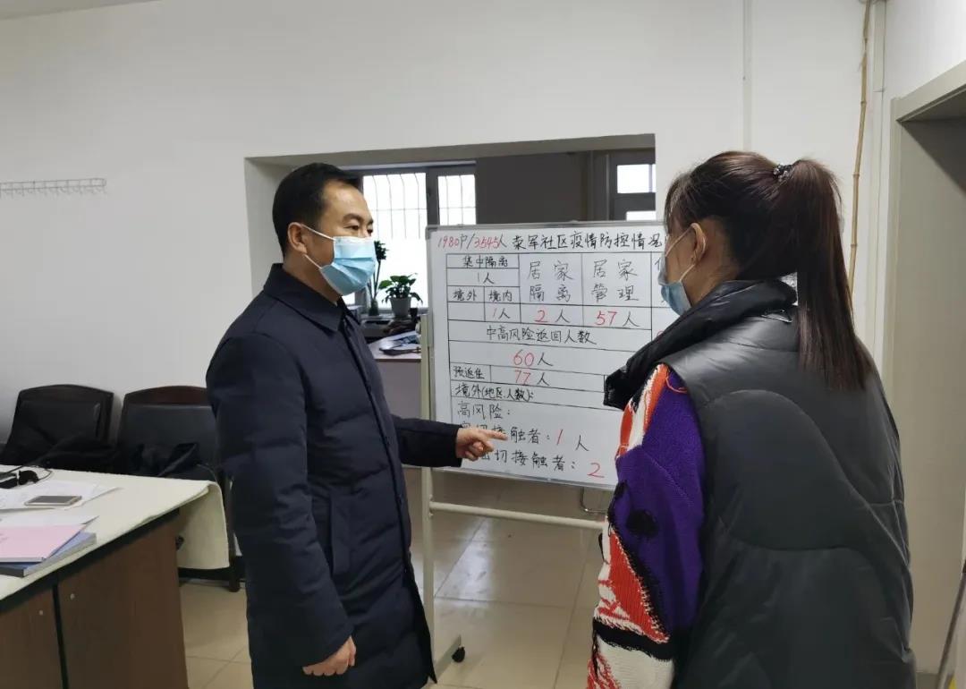 徐永刚指出,基层社区是疫情防控工作的关键,要密切关注疫情形势变化,坚持常规排查与精准排查相结合,使出“绣花针”功夫,全面掌握辖区人员特别是重点地区返回人员情况。要发挥网格长、楼长作用,明确工作职责、做好业务培训,做到网格员工作每日调度,确保信息通畅、衔接顺畅,通过严而细的工作在群众中起到宣传警示作用,确保工作底数清、人员管到位、守住社区“大门”。