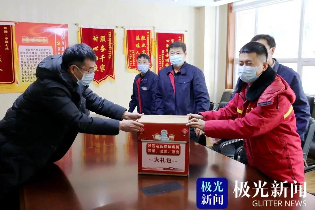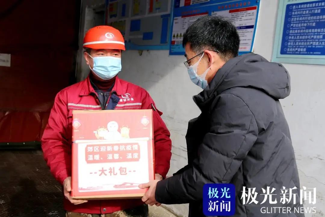 “感谢你们在这种时刻坚守在岗位上,区里为你们准备了慰问礼包。”郊区发展改革工信局副局长齐旭武说。