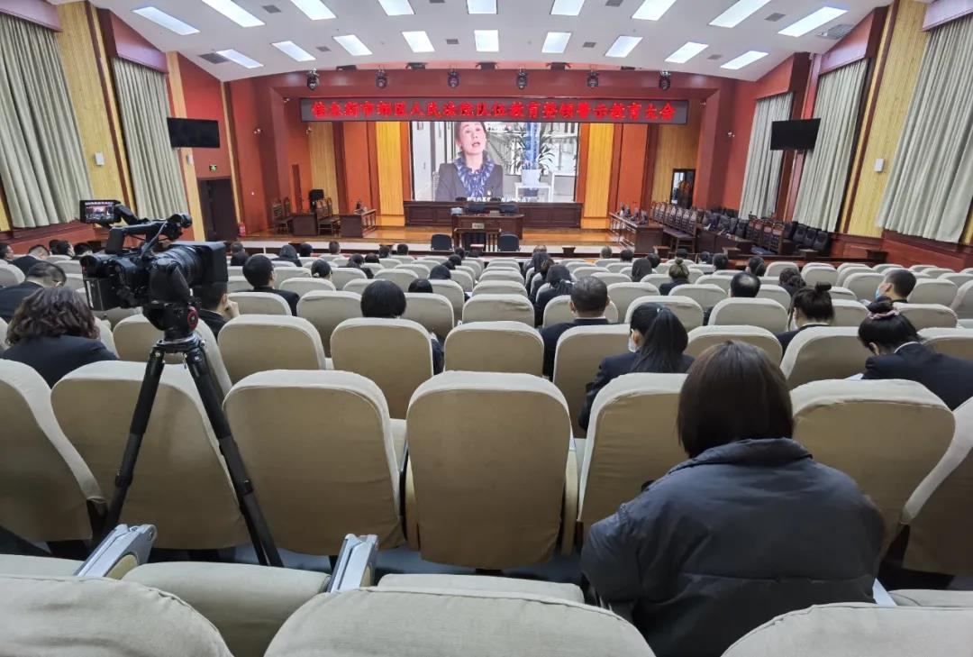 3月26日,郊区人民法院组织召开队伍教育整顿警示教育大会,观看警示教育片《永葆政治本色》,用身边事教育身边人,以案明纪、以案说法、以案促改,常敲警钟、常设红线,进一步固本培元、筑牢绝对忠诚,为即将开展的查纠问题、总结提升奠定坚实的思想基础。