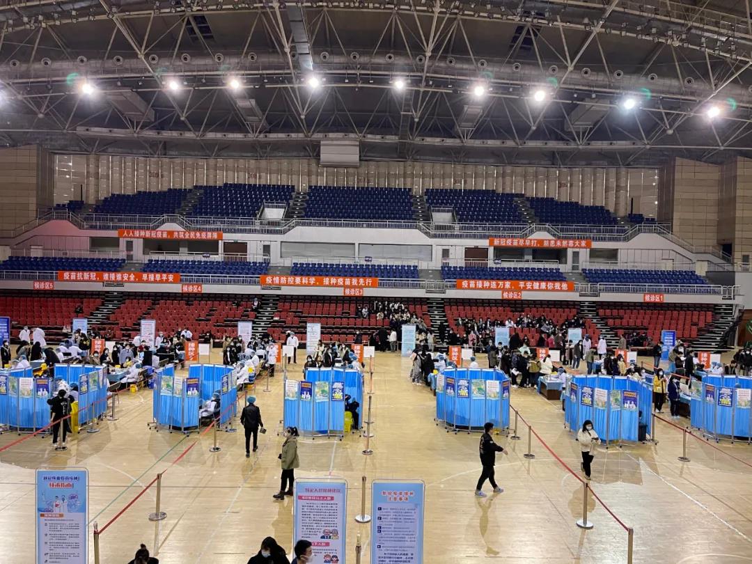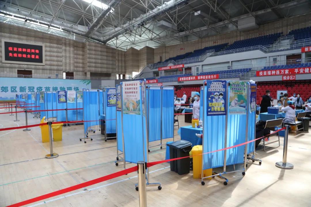 在会展中心临时接种点,设置了20个接种台,指派全区医护人员200余人。在工作人员的指引下,接种人员可快速完成接种。预约的人员在出示身份证等相关证件、信息核对、填写基础信息之后就可以扫码接种疫苗,接种疫苗后需要留观30分钟,无不良反应后便可自行离开。郊区还在进口设置了流动人引导员,同时在接种区内又设定了固定的引导员,保证人员不聚集,保持一米线距离,整个疫苗接种环节闭环式管理,全过程无死角。
