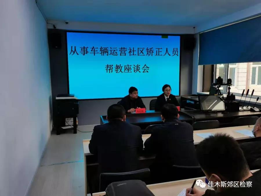 3月29日,郊区人民检察院联合区司法局组织从事车辆运营的社区矫正人员召开帮教座谈会,副检察长李会琪为参会人员详细地讲解了《佳木斯市郊区从事车辆运营社区矫正对象外出请假实施办法(试行)》的相关规定,以社区矫正案例,充分释法说理,通过法治教育和真心帮扶,帮助矫正对象真诚悔过、成功矫正,早日回归社会。