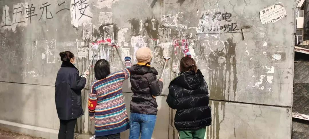 社区联合辖区志愿者开展清理小广告活动,活动中网格员和志愿者志愿者们手拿刷子,铲刀,喷壶对墙体外墙道路两边的小广告进行清理,经过大家的清理,小区墙面焕然一新,既维持了社区环境的整洁与优美,又培养了大家爱护公共环境的意识,同时把这种正能量传播到小区居民身边,提升了辖区的环境保护意识,为建设美好社区打下了良好基础。