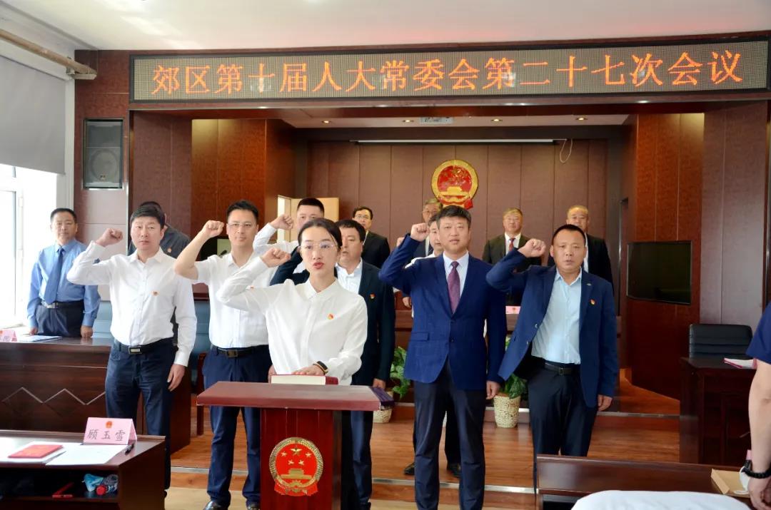在人事任免工作中,以无记名投票表决的方式,任命顾玉雪同志为郊区人民政府副区长。任命李大伟同志为佳木斯市郊区人民政府办公室主任;赫明震同志为佳木斯市郊区交通运输局局长;程宇涛同志为佳木斯市郊区水务局局长;潘俊国同志为佳木斯市郊区住房和城乡建设局局长;丁国华同志为佳木斯市郊区市场监督管理局局长;刘晓辉同志为佳木斯市郊区退役军人事务局局长。任命宋克男同志为区监察委员会副主任;孙振国同志为区监察委员会委员。郑昌辉向顾玉雪等新任职人员颁发了任命证书,新任职同志向宪法进行了庄严的宣誓。