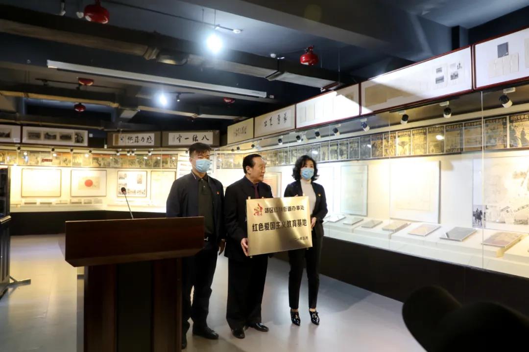 在参观过程中,全体党员聚精会神地观看纪录介绍片,红旗街道党工委副书记单新颖为陈列馆赠授红色爱国主义教育基地的“红色招牌”。