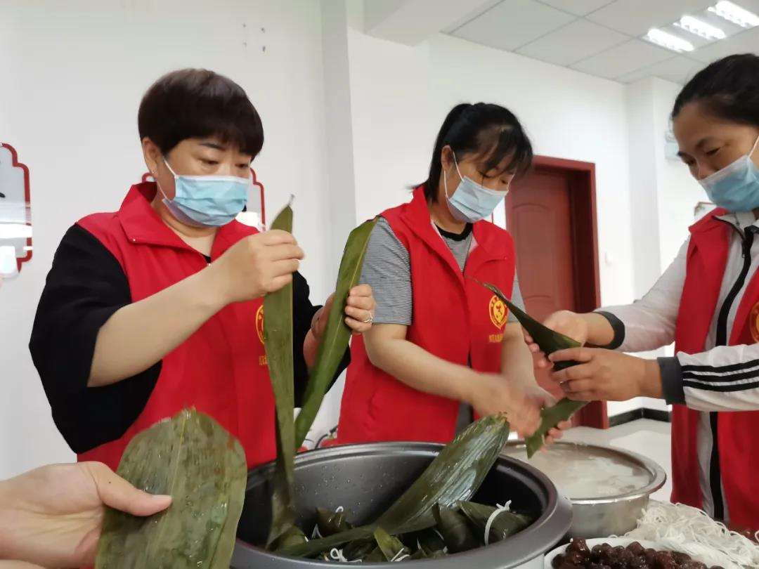 社区工作人员、志愿者、在职党员参与其中,大家拿起粽叶、糯米、红枣包出一个个漂亮的粽子。一片片清香的粽叶、一粒粒晶莹的糯米,在一双双巧手下,瞬间变成了一个个诱人的粽子。