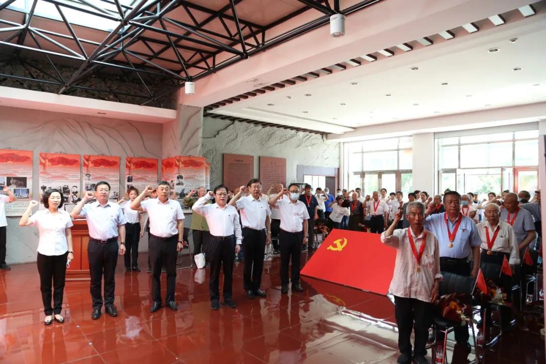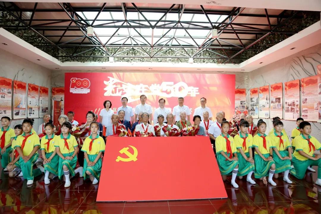 仪式现场,区委书记冯甲伟带领新老党员代表郑重宣誓,与会领导向“光荣在党50年”的18位党员代表颁发了纪念章,少先队员代表向党员代表献花。老党员代表结合自己的人生经历,分享了“在党50年”的感慨和体会。
