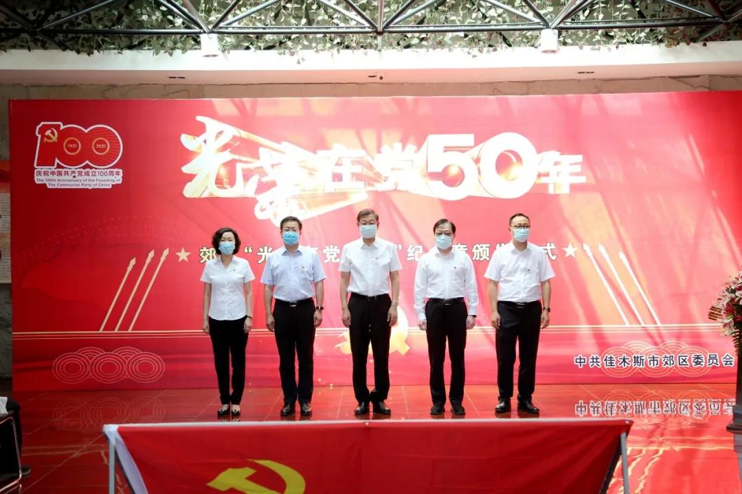 6月23日,郊区举行“光荣在党50年”纪念章颁发仪式,市委常委、组织部部长刘立民出席并致辞。