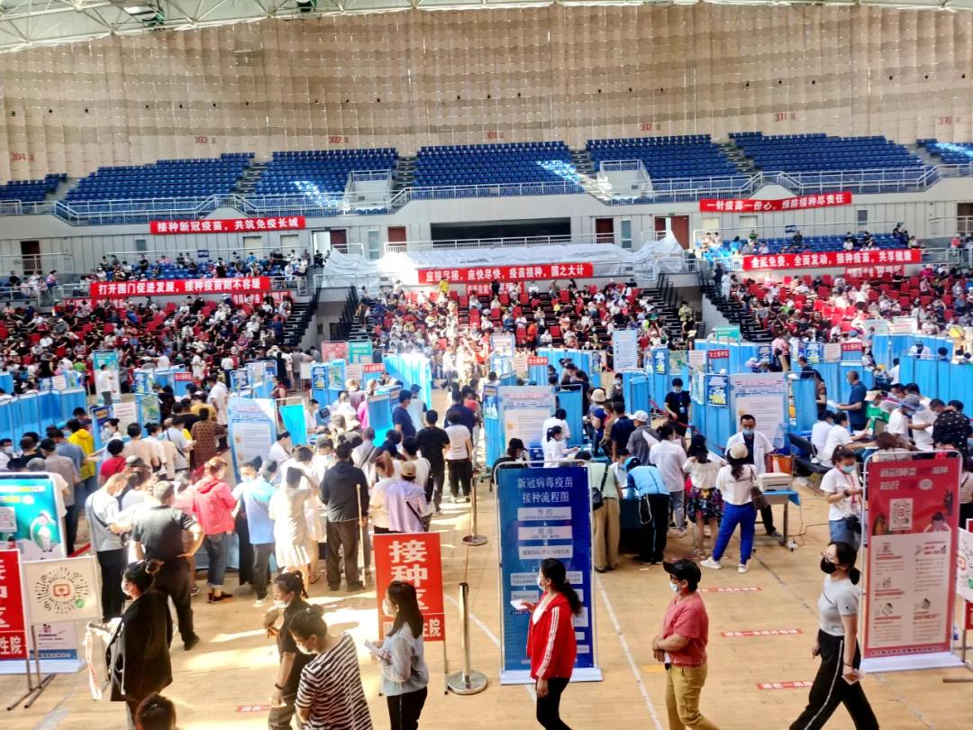 为了高效完成此批大规模接种任务,为居民提供优质接种服务,郊区启动会展中心大型临时接种点,设置20个接种台,从等候区到知情告知、登记录入,再到疫苗接种和留观,全流程、全方位、全要素服务保障到位,日接种能力过万,全力保障人民群众生命健康。