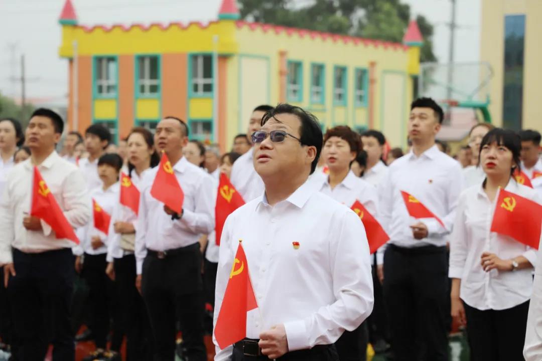 在区委书记冯甲伟的带领下,大家面向党旗、庄严举起右拳,新党员入党宣誓,老党员重温入党誓词。