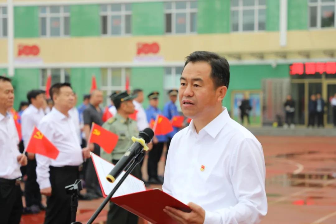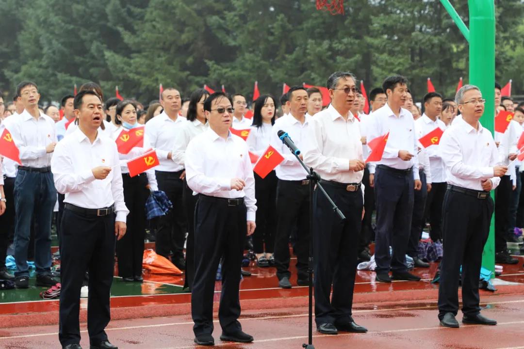 为热烈庆祝中国共产党成立100周年,7月1日上午,郊区“同升一面旗·同唱一首歌”升旗仪式在郊区长青中学举行。郊区处级以上领导及各乡镇、街道、区直各部门党员共计1000余人参加。区委副书记、政府区长徐永刚主持仪式。