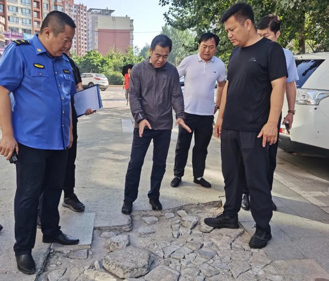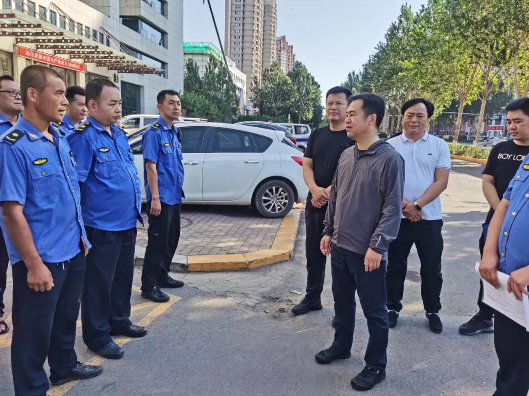 在包保路段长安路(红旗街至圃东街),徐永刚步行巡查包保路段门前三包、设施管理、规范经营、交通秩序、环境卫生等“路长制”有关工作,对现场发现的人行道板破损、车辆乱停乱放、人行道占用等5项问题在《郊区“路长制”巡查工作簿》上进行了登记,并逐一落实了整改措施。在巡查过程中,徐永刚一行慰问了高温天气下坚持在岗的城管执法大队工作人员,对城管执法队伍在我区城市管理、“十乱”整治等重点工作中作出的贡献表示肯定,感谢他们不辞辛劳、默默付出,为城市营造了良好的秩序。
