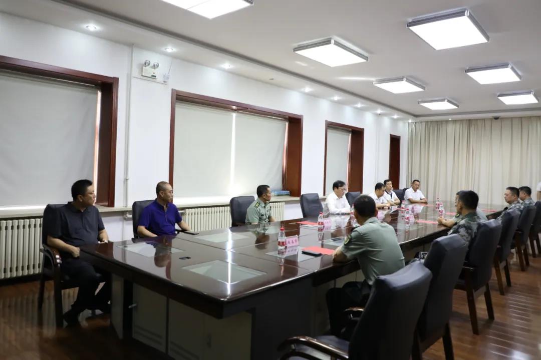 在佳木斯军分区,冯甲伟、徐永刚一行与市委常委、军分区政委吴溪及军分区领导班子进行座谈,冯甲伟汇报了郊区党管武装、国防动员、双拥共建等工作开展情况。吴溪对郊区党管武装、民兵整组等工作给予充分肯定,对郊区多年来对国防动员工作的支持表示感谢,向区委书记冯甲伟获得全省“党管武装好书记”称号表示祝贺,希望郊区再接再厉、再创佳绩。冯甲伟表示,将认真履行人武部党委第一书记职责,始终胸怀国家安全和发展全局,不断强化党管武装工作的政治责任和政治自觉,一如既往发扬拥军优属的光荣传统,加强武装部正规化建设,实现应急物资储备与战备器材储备共建共用,进一步推进军地军民深度融合发展,营造拥军爱军良好氛围,共同谱写双拥共建新篇章。