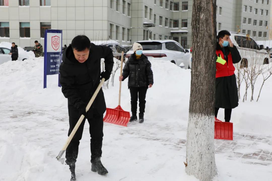 活动中,大家不畏严寒,积极主动、相互配合、齐心协力,挥舞着铁锹和扫帚,你铲我扫,一派热火朝天的景象,一点点地将积雪铲起并集中堆放;看着渐渐成堆的小雪山、畅通的车道和人行道,无积雪的居民楼路面及有序行驶的行车环境,参与扫雪的机关党员干部志愿者脸上红彤彤的、洋溢着开心的笑容,他们在劳动中体会着快乐与收获,在清雪行动实践中感悟初心、践行使命。路过的人们见了连连竖起大拇指,表示感谢,是党员干部志愿者的辛苦付出,给人们出行带来了方便,带来了快乐。