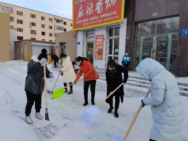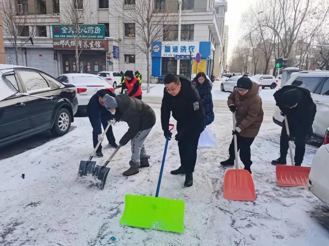 活动中,大家不畏严寒,相互配合、齐心协力,挥舞着铁锹和扫帚,破冰除雪,一派热火朝天的景象。敲碎的冰块和积雪用铁锹铲起并集中堆放;看着路面冰雪被一点点清除,参与扫雪的机关党员干部志愿者脸上都洋溢着开心的笑容,他们不但在劳动中体会到了快乐与收获,还在清雪行动中感悟初心、践行使命。干净的路面受到了路过人们的一致好评,纷纷向参加清雪的党员干部志愿者表示了感谢,向他们的无私付出表达自己的敬意。