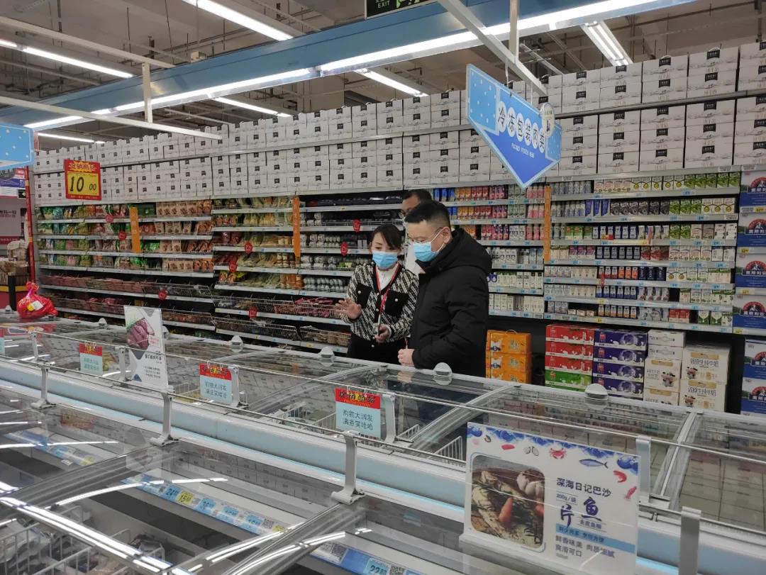 在佳木斯大润发超市、佳木斯市华瑞冷库有限公司,李遥详细了解商超、冷库等场所落实“防疫三宝”、双码查验情况,查看了冷货、冻货送检及食品码情况,并对当前冷链食品储存、销售、运输工作做出相关要求。