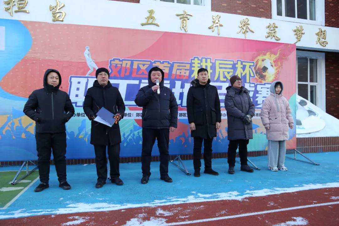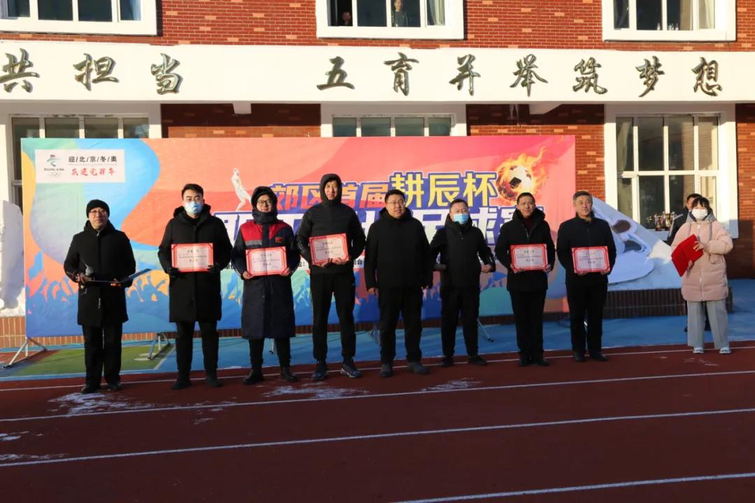 1月14日下午,由区总工会、区直机关工委、区文体广电和旅游局共同举办的以“迎北京冬奥 庆建党百年”为主题的职工五人制雪地足球赛,在区第十五小学收官。区委副书记、政法委书记卢国强参加闭幕式并为获奖队伍颁发奖杯和证书。