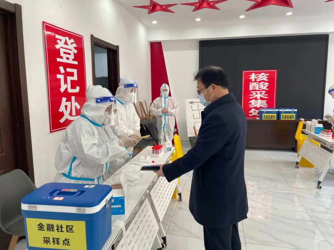 在红旗街道、友谊街道、英俊街道和云环街道,冯甲伟会同市疫情防控第六督导组实地察看部分核酸检测点场地设置、组织协调、秩序维持、服务保障等工作情况,详细了解检测点工作流程和操作规范以及街道、社区风险人员排查管控情况,在友谊街道金融社区以“走流程”的方式进行核酸检测,并提出指导意见。冯甲伟强调,开展全员核酸检测是对疫情早发现、防扩散的关键举措,全区上下要充分认识全员核酸检测工作的重要性,科学组织、密切配合、优化服务、强化保障,抓实抓细采、送、检、报各个环节。要加强统筹调度,优化采样流程,提高核酸检测质量和效率,确保高质量完成全员核酸检测任务;要强化组织引导,严格落实扫码、测温、戴口罩、一米线等防控要求,扎实有序开展好核酸检测工作;要强化宣传引导,切实增强广大群众的积极性和主动性,对特殊人群要加强服务力度,主动上门检测,做到应检尽检、不漏一人。冯甲伟还来到双安盛世小区察看了解小区管控情况,叮嘱值岗工作人员做好个人防护,在抓好小区管控的同时,要强化服务保障,最大程度上满足小区群众需求,耐心细致宣传防疫政策、开展心理疏导、解决实际难题,让群众理解配合我们的工作,齐心协力打好打赢疫情防控这场人民战争。
