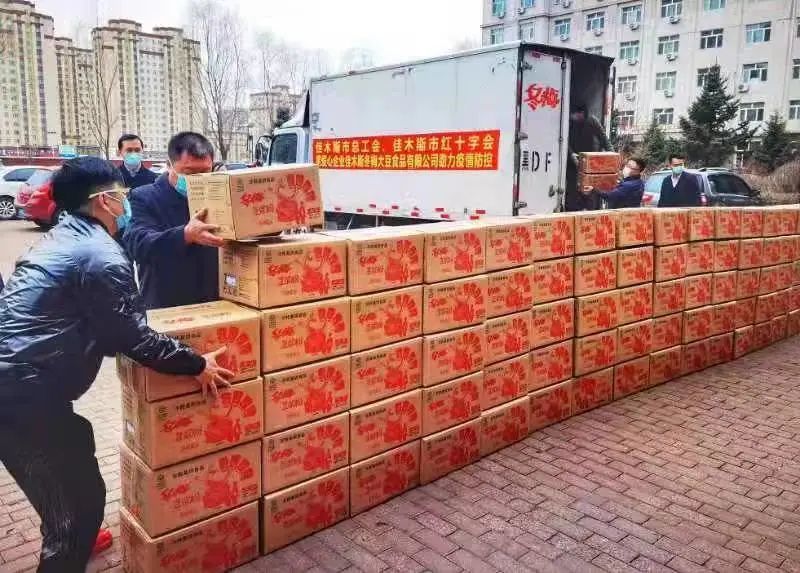 8日清早,佳木斯市总工会、佳木斯市红十字会携爱心企业佳木斯冬梅大豆食品有限公司助力疫情防控,分别来到4个城区公路疫情防控服务站和街道社区慰问防控一线工作人员,并送去500箱爱心豆浆粉和对疫情防控工作人员的真挚问候。