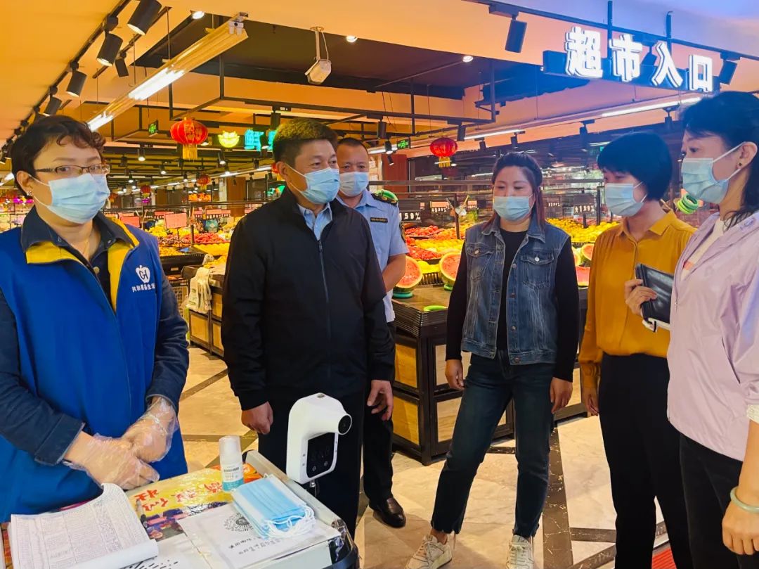 在共和果业生活超市、悦水汇洗浴、华瑞冷库,董秋实实地察看场所入口测温、查验两码、消杀记录等疫情防控工作落实情况,详细了解冷链作业运转流程、各岗位环节疫情防控措施执行及日常管理情况。他强调,各市场主体要重点把好“入口关”,严格落实测量体温、扫码验码、戴口罩、通风消毒等防控措施,切实把安全经营和常态化疫情防控各项措施落实落细,确保不出现防控漏洞。冷链企业要严格落实货物入库、人员闭环管理、核酸检测、消毒消杀和货物出库等各环节防控措施,做到环环相扣、无缝衔接、不留死角。各相关部门要以对人民群众身体健康和生命安全高度负责的态度,加强对人员流动量大、人口密集的公共场所的督促检查,引导各市场主体、经营户及消费者强化防控意识,加强相关从业人员的疫情防控教育宣传和各项疫情防控措施落实工作,慎终如始打好打赢疫情防控这场硬仗。