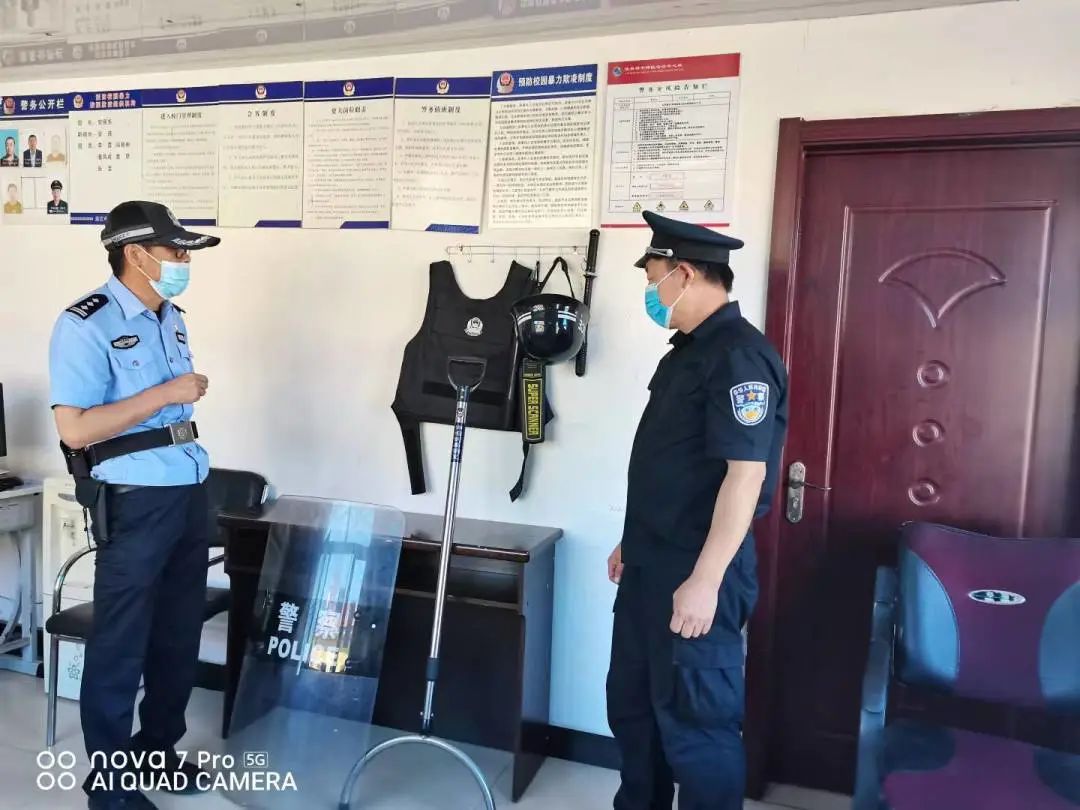 过程中,派出所民警详细询问了校园安保人员值班值守、视频监控运行、消防设施及消防器材配备和使用等情况。重点对校园疫情防控措施落实情况,学校教室、餐厅、宿舍等场所消杀情况,楼道和消防通道是否顺畅,应急照明、紧急出口指示设施是否正常等进行全面排查。
