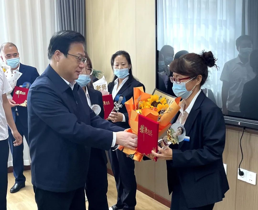 在第38个教师节即将来临之际,9月8日,市人大常委会副主任、区委书记冯甲伟到莲江口中学看望慰问教育工作者,为部分中小学校优秀教师、教学能手代表颁发证书及奖金,与他们进行座谈交流,了解工作中存在的问题,倾听对教育工作的意见建议。