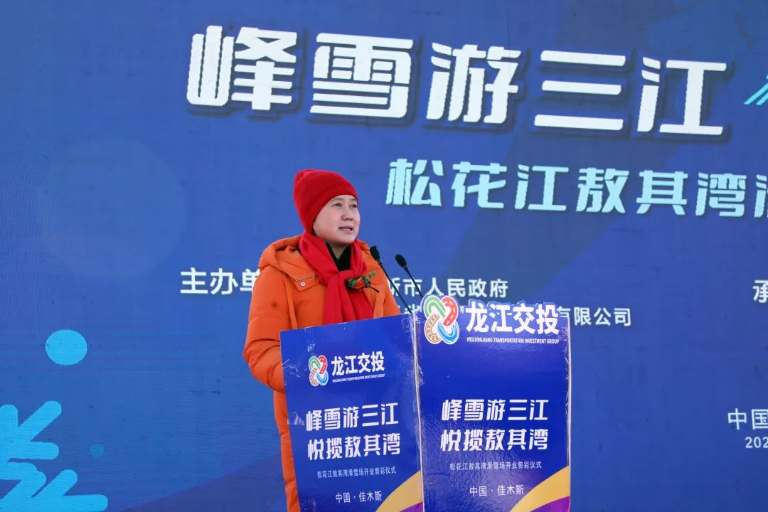 丛丽在致辞时代表市委、市政府对各位嘉宾的到来表示热烈的欢迎,并对长期以来关心支持佳木斯发展的各界朋友表示衷心的感谢。近年来,我市深入践行“绿水青山就是金山银山、冰天雪地也是金山银山”的理念,抢抓三亿人参与冰雪运动、后冬奥时期冰雪产业再迎“热经济”和全省大力发展冰雪经济的历史机遇,拼抢冰雪产业发展赛道,掀起群众性冰雪运动热潮。当前,省交投集团与我市合作正不断走深走实,佳木斯数字创意产业园聚才聚智,国际物流港项目建设如火如荼,数字生态岩矿开发有力有序。这次松花江敖其湾滑雪场项目的建成运营,是双方精诚合作、携手共赢的又一力作。在滑雪场升级改造的过程中,大家战疫情、斗严寒、抢时间,用35天完成基础设施建设、60天实现全新面貌运营,全面展现了“交投速度”,充分诠释了佳木斯的优良营商环境。佳木斯以松花江敖其湾滑雪场开业为标志全面开启了欢乐冰雪季,诚挚欢迎省内外各方朋友,到这里赏冰戏雪,品味大美三江。
