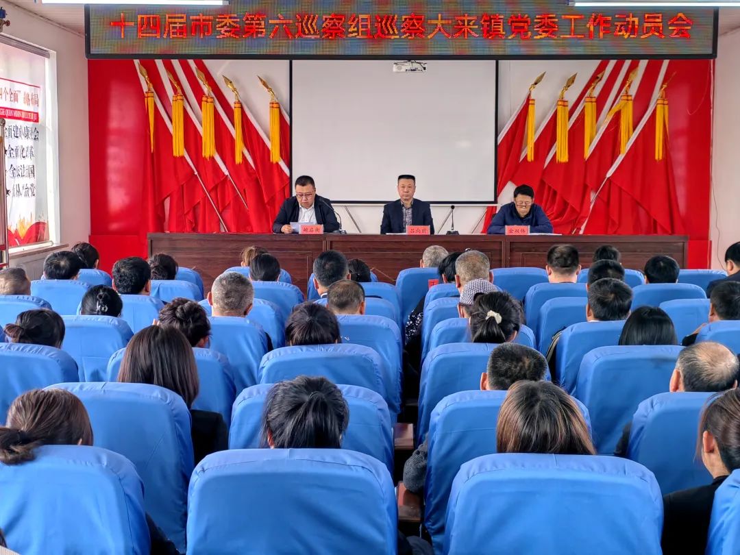 按照市委统一部署,市委第六巡察组进驻大来镇并召开巡察工作动员会。会上,市委第六巡察组全体成员、大来镇党政班子成员、全体党员干部、12个行政村党支部书记参加本次会议。
