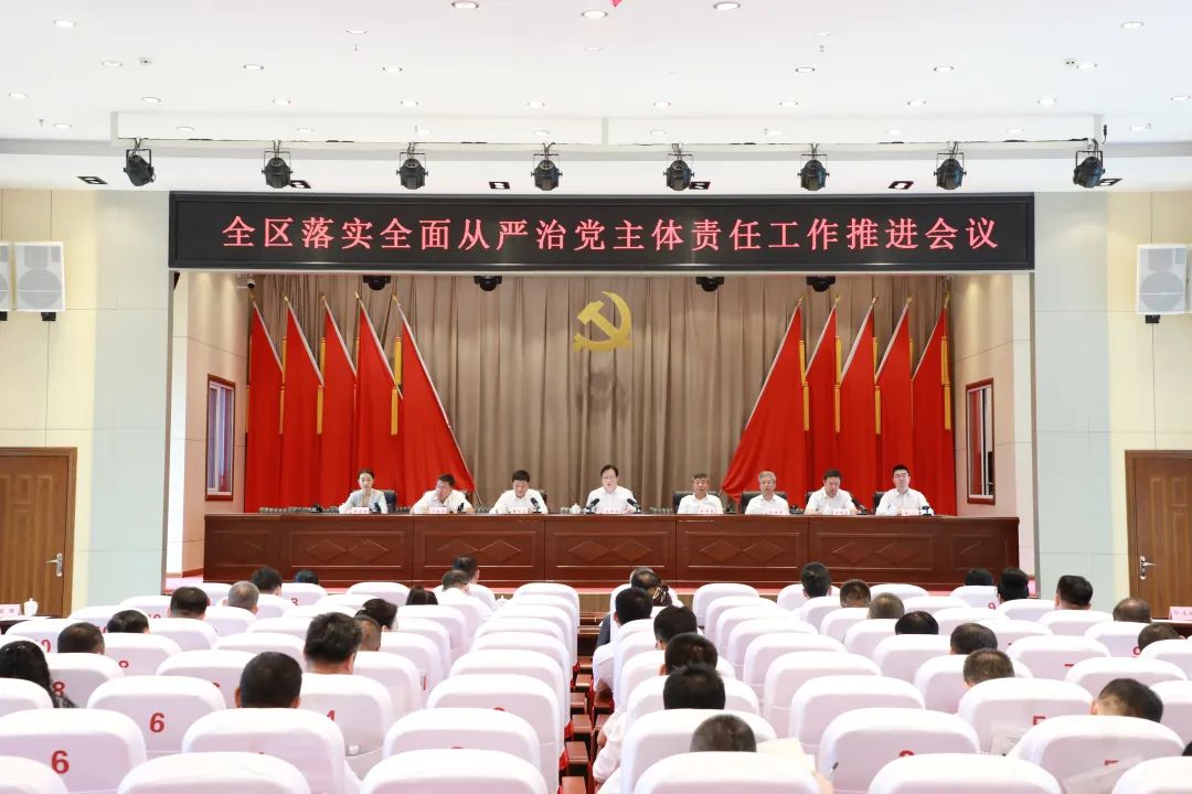 会上传达学习了《党委(党组)落实全面从严治党主体责任规定》和佳木斯市落实全面从严治党主体责任集体讲析会议精神,通报了全区2022年政治生态建设考核结果,下发了《党委(党组)全面从严治党主体责任年度履职项目指引清单》和《履行全面从严治党主体责任月纪实册》,组织相关参会人员签署了《落实全面从严治党主体责任责任书》。