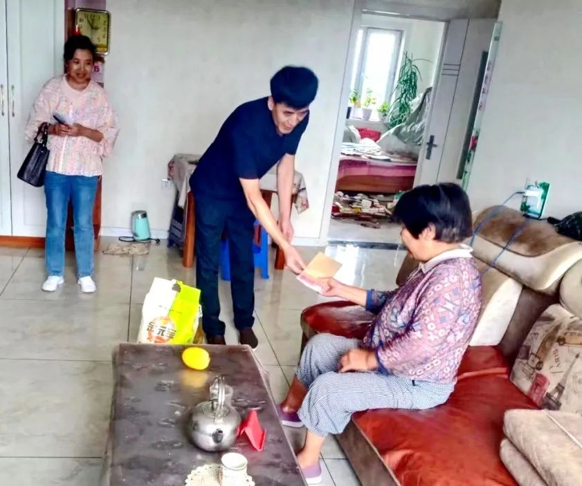 栗椿斌一行人来到困难群众家中,送去了生活必需品及慰问金,同时为家中即将上小学的孩子送去书包、文具等学习物品。慰问过程中还详细了解了他们的生活状况和身体情况,嘱咐他们要保重身体,有困难向社区反映,用积极的态度面对生活。