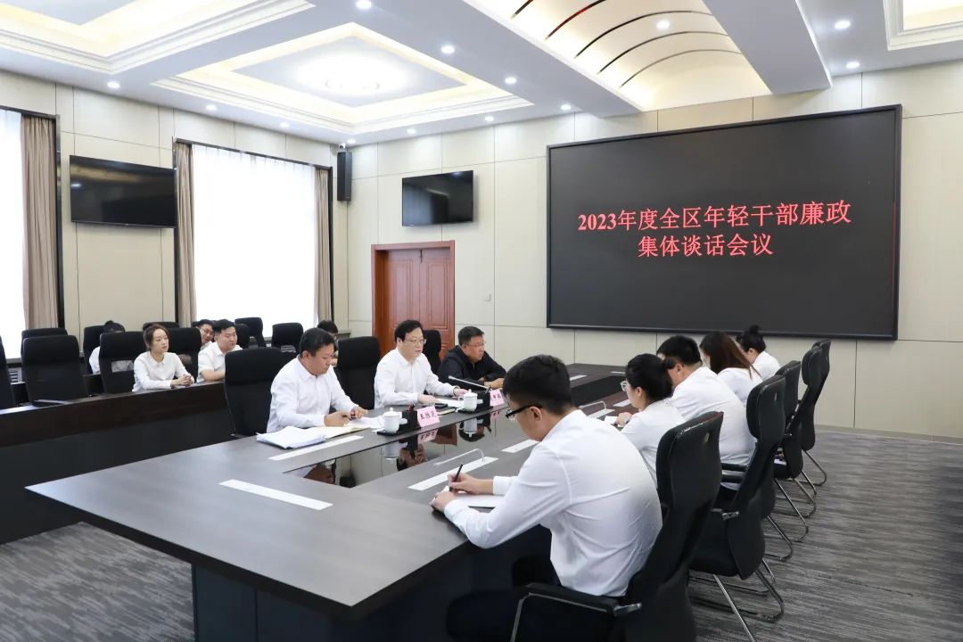 8月30日上午,市人大常委会副主任、区委书记冯甲伟与全区年轻干部进行廉政集体谈话,认真落实党中央和省、市委关于全面从严治党的部署要求,教育引导年轻干部对党忠诚、担当进取、勤勉务实、廉洁从政,以更加振奋的精神状态投入现代化强区建设各项事业。