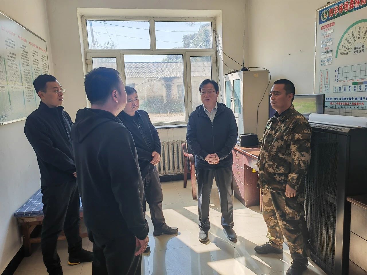 在四丰林场,冯甲伟实地检查节假日期间值班值守情况,了解秋季森林防灭火预案制定、物资装备配备以及日常巡防巡逻等情况。他强调,要抓实抓细森林防灭火各项工作,严把上山入口关卡,严格野外火源管控,确保守住山、看住人、管住火。要加快“林缘地”“天窗地”等重点地块的秋收进度,按要求设置好防火隔离带,同时要抢前抓早做好秋整地工作,做到应整尽整、应离尽离,最大程度上降低森林火灾风险。要严格值班值守,值班人员、观测瞭望人员要在岗在位,加大护林巡护频次密度,提高物防技防水平,坚决打好森林防灭火主动仗。