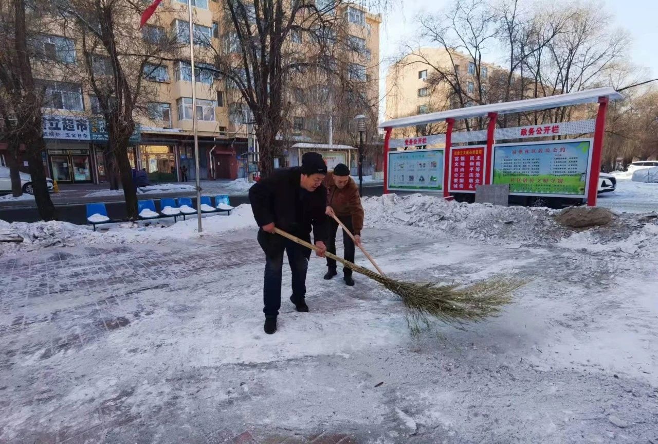 郊区机关干部发挥党员先锋作用,第一时间下沉社区,按照“以雪为令、边下边除、雪中路通、雪停路畅”的原则,与街道、社区工作人员对辖区内主次干道、商户门口、弃管小区、公园等重点区域路段开展清雪工作。确保居民在雪天走地通,行地顺。