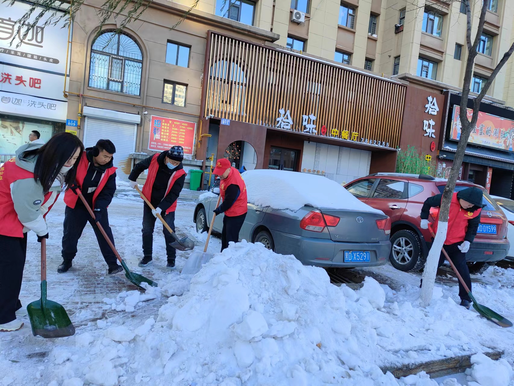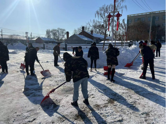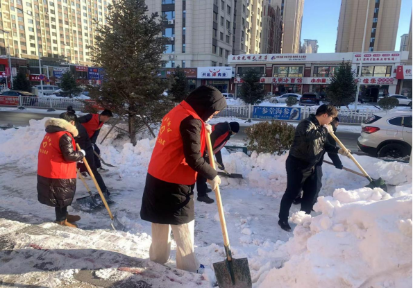 清雪活动中,大家分工明确,迎风而战,挥锹扬铲,干劲十足,热火朝天的劳动场面让严寒的天气显得暖意浓浓。他们不畏严寒、勇于担当、分段清扫、循序渐进,消除了积雪积冰带来的安全隐患,确保过往行人、车辆的安全,忙碌的身影构成一道靓丽的风景线,彰显了党员干部赤诚热情的为民服务初心,为居民开通了一条条畅通的“暖心路”“安心路”,保障了居民出行安全。