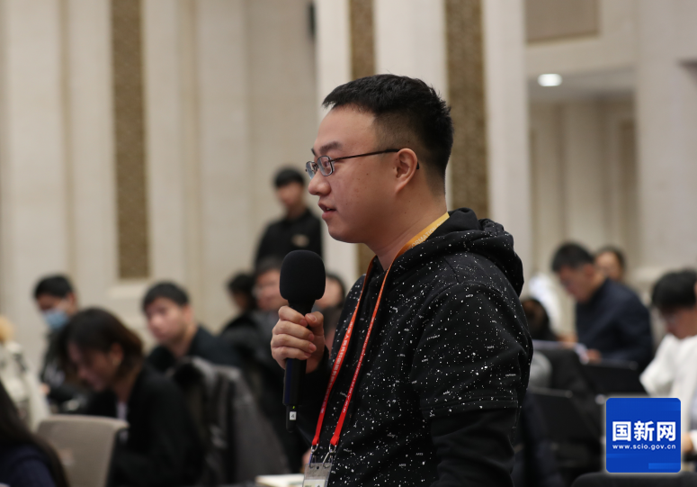 中央广播电视总台央视记者提问(赵一帆 摄)