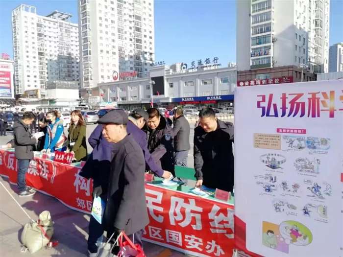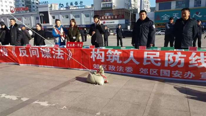 为纪念《中华人民共和国反间谍法》颁布实施五周年,全面提高人民群众的反奸防谍意识和保密意识,营造全社会维护国家安全氛围,使广大人民群众共筑反奸防谍的钢铁长城,11月1日,郊区组织开展《反间谍法》宣传活动,郊区委政法委、国安办、法院、检察院、司法局、武装部、教育局7家单位参加宣传活动。