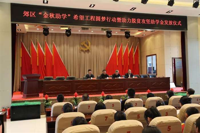 在“不忘初心、牢记使命”主题教育深入开展之际,10月17日,2019郊区共青团助力脱贫攻坚暨“金秋助学”希望工程圆梦行动助学金发放仪式在区政府二楼会议室举行。区委副书记孙跃武,区委常委、组织部部长、统战部部长闵祥寒,团市委副书记徐泽生出席仪式。受捐助学生代表、企业代表、社会爱心人士代表和各乡镇党委书记、区直各部门主要负责同志、各社区党工委书记、各学校校长以及我区各战线团干部参加了仪式,仪式由闵祥寒同志主持。