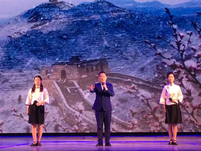 演出在诗朗诵《盛世放歌》中拉开序幕。整场演出涵盖朗诵、京剧、歌舞等艺术类型,经典咏诵《沁园春雪》、师生朗诵《七子之歌》等节目形式新颖、内容精彩,引发了广泛共鸣。随着区领导、演员和现场观众共同起身齐唱《没有共产党就没有新中国》,整场演出划上了完美句号。
