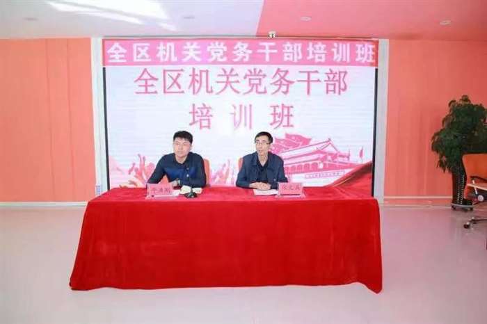 邀请市委组织部王清松同志对发展党员细则和党费收缴标准做了全面细致的指导,进一步规范了发展党员工作流程和机关党费的收缴及使用。区委组织部相关科室同志对“不忘初心、牢记使命”主题教育及《党支部工作条例》、《党支部标准化建设》、《关于加强和改进中央和国家机关党的建设的意见》、《党员教育管理工作条例》等内容进行了专题辅导,进一步提高了党务干部理论水平和业务能力,要求各党组织不断提高政治站位,转变工作作风,真正将党建工作落到实处,充分发挥党员干部在推动振兴发展中的作用。培训会上,全体学员重温了入党誓词,合唱红歌,同时观看《丰碑》等爱国主义教育影片。会后,参训学员进行考试,检验所学成果并参观了佳木斯电商园区建设发展成果。