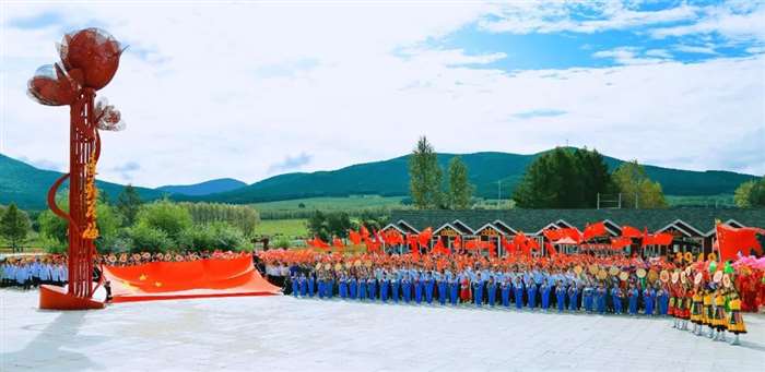 祖国华诞七十载,华夏神州披锦绣。为庆祝新中国成立70周年,引导全区干部职工和社会各界群众共抒爱国情怀,8月25日上午,郊区在达勒花海举办了“放歌花之海 颂歌新时代”为主题的千名干部群众向祖国献礼活动。活动由区委、区政府主办,区委宣传部、区文体广电和旅游局承办。区四个班子领导、机关干部、教师、护士、学生、工人、农民、赫哲族艺术家、游客等各届代表2000余人参加了此次活动。 拍摄活动于上午八时准时开始,1000余人在达勒花海广场伴随着歌曲《我和我的祖国》优美的旋律、展开嘹亮的歌喉,八位护旗手守护着五星红旗,五十面鲜红的国旗迎风飘扬,浓厚的爱国之情洒向整个广场。 二十名人民教师高高擎起200多平方米的巨幅国旗,奔跑于花海之路,对祖国崇敬的暖流迅速涌上每个人的心头。 当一面印有“祖国在我心中”巨大的红旗从花海两山阁顶向下抛落并徐徐在人群中展开时,全体参与者高呼“我爱你中国”“祖国万岁”,将整个活动推向了高潮,对伟大祖国成立70周年最热忱的献礼与最美好的祝愿响彻在人们的心头。 青山绿水间的达勒花海上空,回荡着豪迈的赞歌,干部群众齐声歌唱祖国。歌声唱出了郊区奋进新时代的坚定步伐,唱出了郊区干部群众奋进新时代的崭新风貌。 拍摄中不断有游人参与到合唱中来,农民、工人、学生、志愿者、党员干部代表,围观的人群也在现场气氛的感染下挥动双臂一起高歌 “歌唱我们亲爱的祖国……”一首歌道不尽对郊区的无限热爱,道不尽对祖国的无比崇敬! 赏花、游园、颂歌,歌声伴着花香构成了一幅绚丽多彩的画卷。 青山绿水晓风吟,华夏欢歌永向前。这是一场活力四射的青春快闪,亦是一份献给祖国的深情厚礼。壮丽70年,阔步新时代,在区委、区政府的坚强领导下,郊区各行各业正阔步前行,奋进新时代、展示新面貌,凝神聚力、开拓进取,努力为建设“工业强区、旅游名区、智慧新区、开放兴区”贡献智慧和力量!