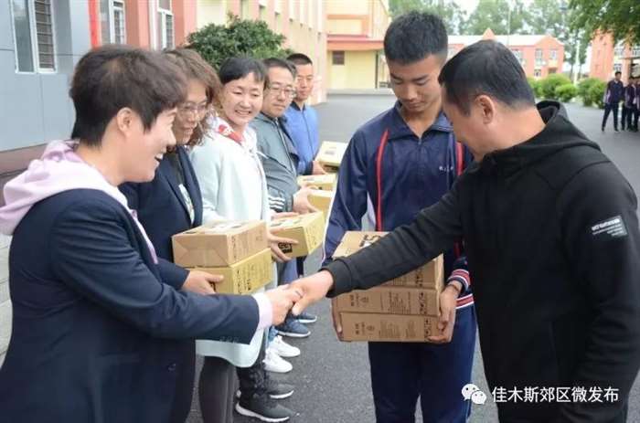 伴随着雄壮《义勇军进行曲》,五星红旗冉冉升起,同学们用洪亮的国歌向国旗致敬,向辛勤培育自己的母校致敬。高三(6)班同学代表全体高三学生发表国旗下讲话,他们用朴实的语言回顾了三年快乐充实的高中生活,表达了对老师的感激之情,并表示将用行动创造松北高中2019年高考新的辉煌。随后,学校为高三学生送上毕业礼物,祝福高三学子在高考中取得优异成绩。在热烈的掌声中,高三学生代表分别为全体高三班主任送上鲜花以表达深深的谢意。全体高一、高二同学向高三的学哥学姐们送去了最真挚的祝福:向高三学习,向高三致敬,金榜题名,梦想成真!