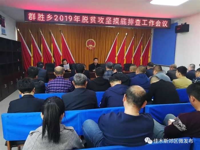 4月15日,群胜乡召开脱贫攻坚摸底排查工作会议及群胜战区脱贫攻坚帮扶干部专题培训会。区扶贫办工作人员、乡帮扶干部、帮扶单位主要负责人、各村党支部书记、村长参加会议。 会议传达了《佳木斯市郊区2019年脱贫攻坚摸底排查工作实施方案》,并根据方案时间节点启动群胜乡脱贫攻坚摸底排查工作。要求全体帮扶干部对辖区内重点农户进行排查摸底。区扶贫办从帮扶工作的重要性、帮扶责任人的职责、帮扶工作的具体内容以及有效解决帮扶过程中存在的问题等方面为大家做出培训讲解。同时还为大家传达了全省脱贫攻坚讲话精神,并结合本周入户摸底排查工作提出一看房、二看粮、三看劳动力强不强、四看家中有无读书郎的“四看法”。 会议要求,全体帮扶干部一定要高度重视此次排查摸底工作,包村领导与帮扶单位负责人负总责,带领帮扶干部入户排查摸底,并在排查后填好统计表,确保在规定时间内完成工作任务,针对此次入户查找出的问题要求即刻整改,以此巩固脱贫成果,有效推进脱贫攻坚工作。