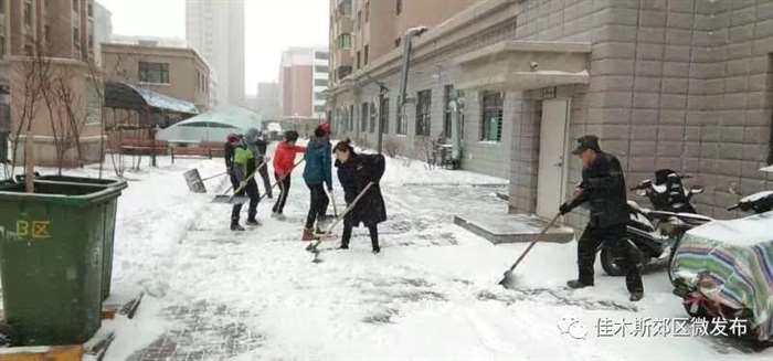 大家经过一个小时的奋战将辖区人员来往密集处的积雪全部及时清扫干净,确保了辖区主道路的畅通无阻,为出行的社区居民及路过行人开辟方便之路。
