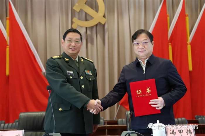 3月19日下午,佳木斯市郊区召开人武部党委第一书记任职大会,人武部政委、党委书记崔永昌主持会议,佳木斯市委常委、军分区政委吴溪到会,宣布郊区委书记冯甲伟同志为郊区人武部党委委员、第一书记,并颁发任职证书。区委常委、人武部部长李勇同志,国防动员委员会成员单位负责人,乡镇党委书记,社区党工委书记,基层武装部部长,社区武装干事和人武部全体成员参加了会议。 冯甲伟表示,就任郊区人武部党委第一书记,这是军分区党委首长对我的信任和考验,我深感使命光荣、责任重大。我将切实担负起和履行好党管武装“第一责任人”职责,虚心学习、不负重托,努力开创全区人武工作新局面。一要牢记职责使命,认真把握党管武装工作方向;二要紧盯强军目标,积极履行党管武装工作职责;三要坚持军民融合,努力营造国防建设良好氛围。 吴溪政委代表军分区党委,对冯甲伟同志担任郊区人武部党委第一书记表示热烈祝贺。他指出,甲伟同志长期以来,一直关心部队建设,大力支持人民武装工作,任区长时注重军政军民团结,在人武部办公楼置换、专武干部考察任免、基层武装部规范化建设等方面给予大力支持。他相信,甲伟同志一定会履行好第一书记职责,当好党委班子的好班长、部队干部职工的主心骨。吴溪政委强调,要强化政治意识,始终高举旗帜维护核心;要强化使命意识,全面提高备战打仗能力;要强化融合意识,集聚军地力量建设国防。大会在雄壮的《中国人民解放军军歌》中结束。