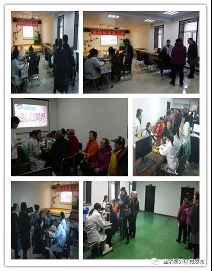 为迎接三八妇女节的到来,倡导健康生活方式,3月6日上午,云环社区联合季氏太极养生院(中医)、佳木斯市金天爱心医院、佳木斯爱视眼科医院的科室医护人员组成义诊队伍在社区内开展中医科、妇科、内科、眼科等健康义诊活动,让居民在自家门口就能享受到免费医疗保健服务。 前期,社区通过电话、微信公众号、微信群的宣传吸引近百余名居民前来参加。在活动现场,前来咨询的居民络绎不绝,近15名专家与就诊的居民进行面对面交流,同时现场免费为居民提供测量血压、心电、把脉、询问病史、疾病诊断和健康咨询等服务,并提醒居民们要养成良好的卫生习惯,保持健康的生活方式。 短短三个小时的义诊,医护人员细心解答了一大批同胞们的疑问,像一阵春风,吹暖人心。此次活动提高了居民群众的健康意识,获得了大家的高度称赞,免费义诊活动是为辖区居民群众献上的一份贴心而温暖的节日礼物。