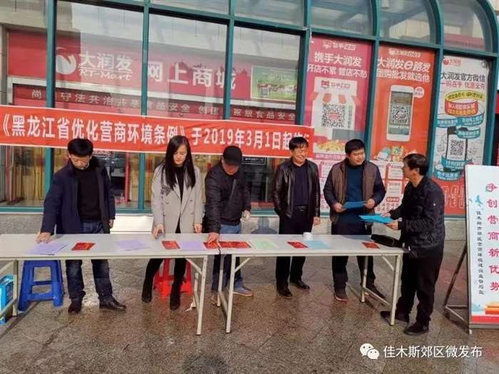 为深入贯彻实施《黑龙江省优化营商环境条例》,加大条例在广大群众及各企业群体中的知晓率和影响力,3月1日上午,郊区开展了主题为“以人为本,依法行政,打造郊区最优营商环境”《黑龙江省优化营商环境条例》主题宣传活动。